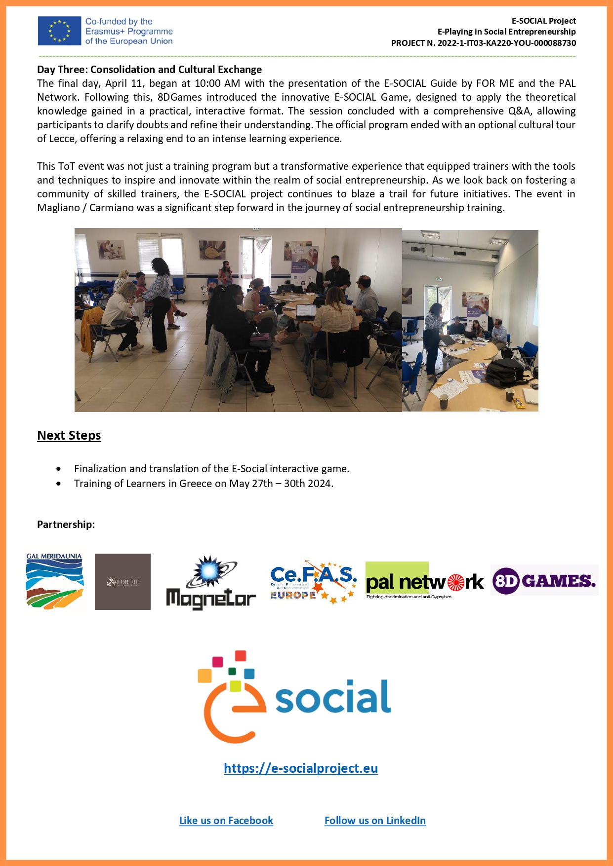 Forme 6th NEWSLETTER E-Playing in Social Entrepreneurship 8th NEWSLETTER E-Playing in Social Entrepreneurship