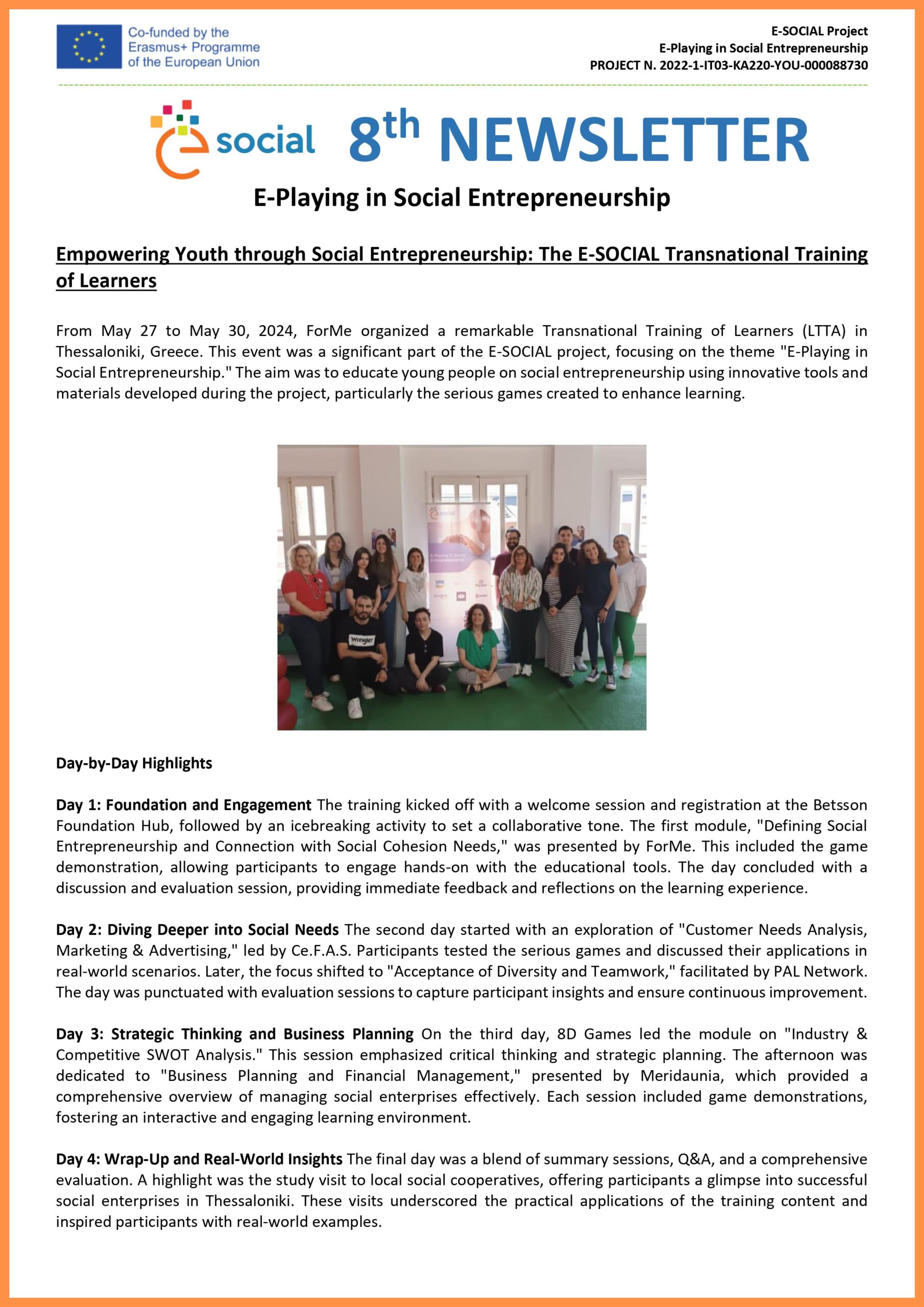 Forme 7th NEWSLETTER E-Playing in Social Entrepreneurship 9th NEWSLETTER E-Playing in Social Entrepreneurship