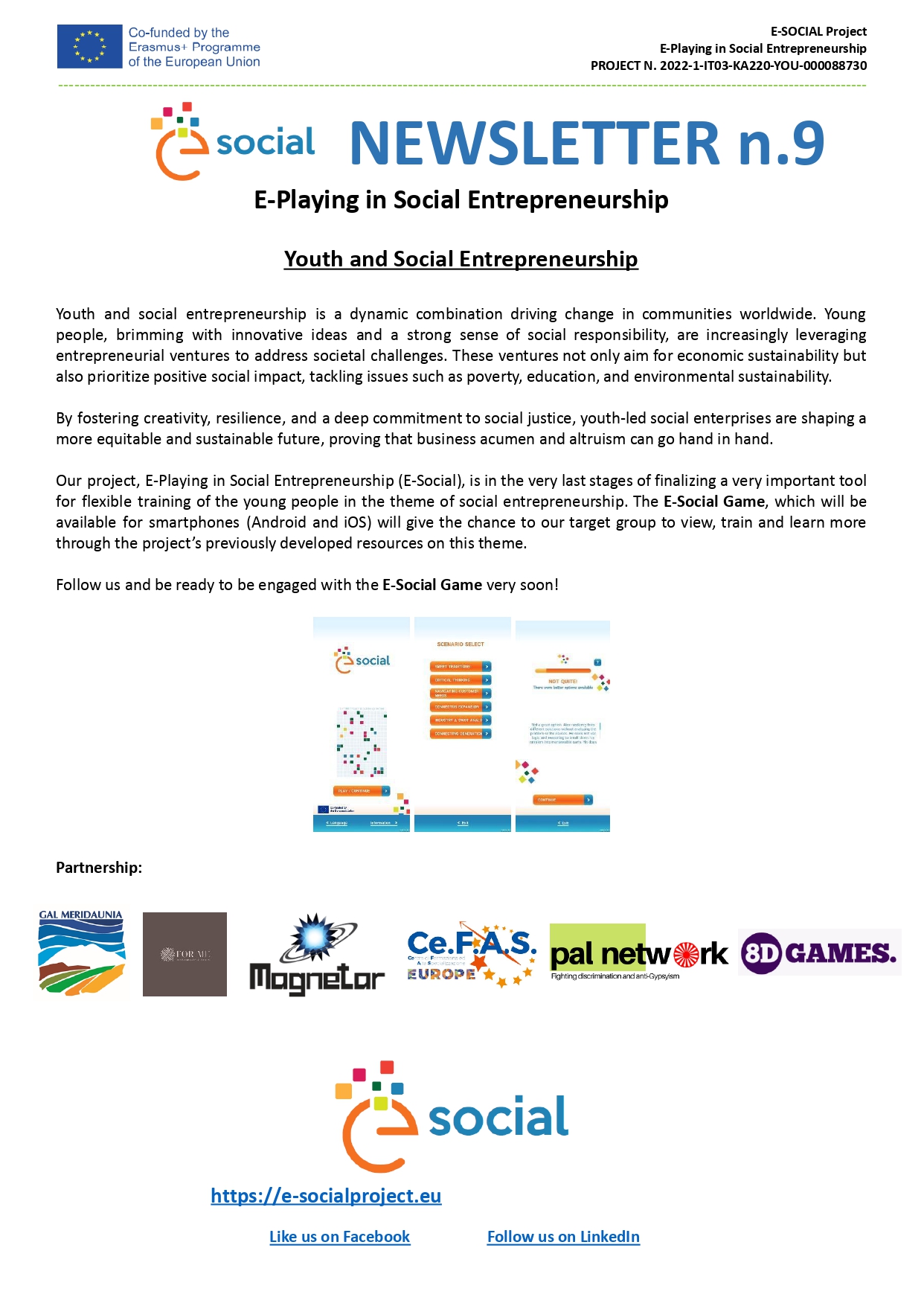 Forme 8th NEWSLETTER E-Playing in Social Entrepreneurship 10th NEWSLETTER E-Playing in Social Entrepreneurship