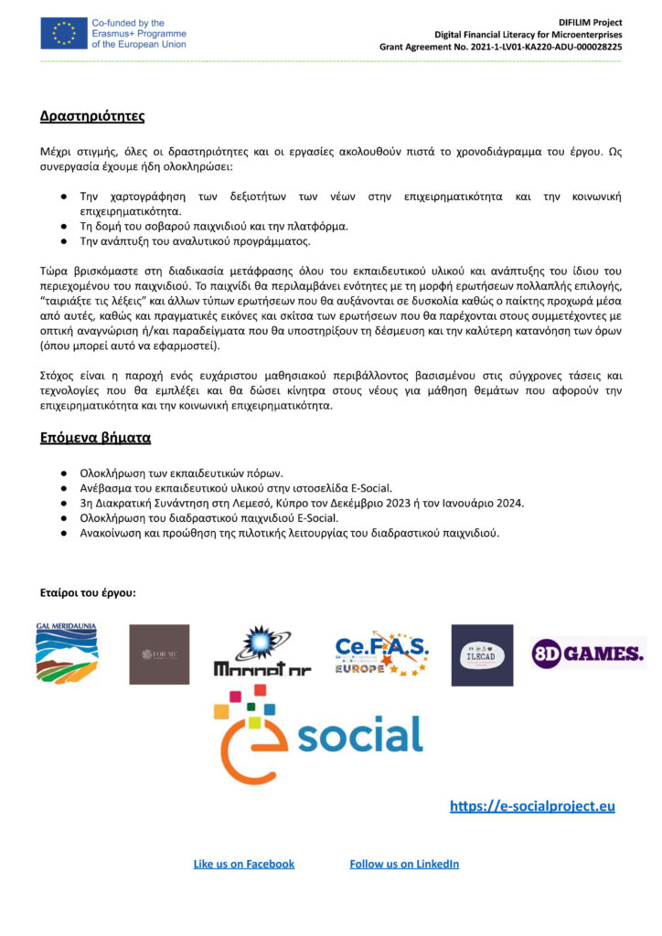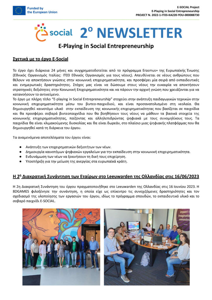 Forme E-social: 2o Transnational Project Meeting – Ιούνιος 2023 3o Newsletter – E-social: E-Playing in Social Entrepreneurship Project