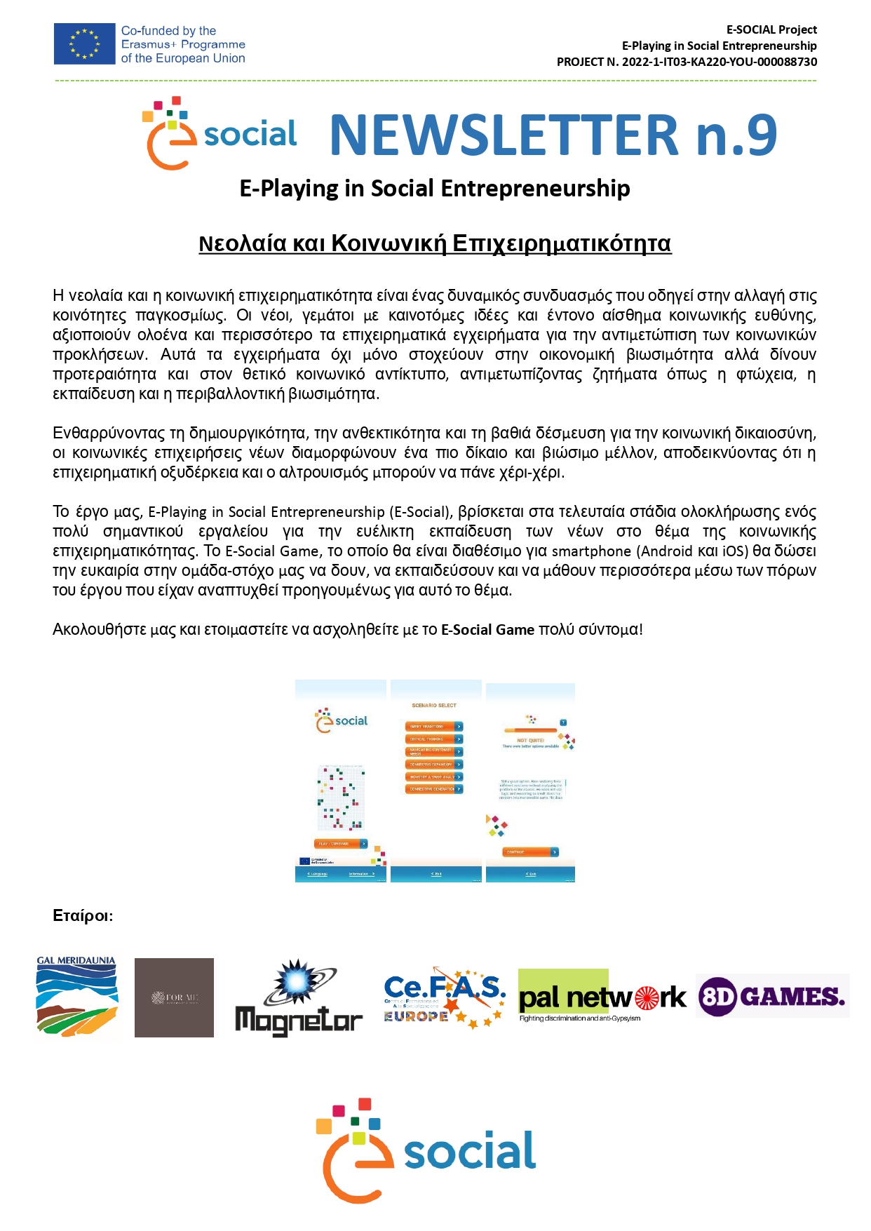 Forme 8o NEWSLETTER E-Playing in Social Entrepreneurship 10o NEWSLETTER E-Playing in Social Entrepreneurship